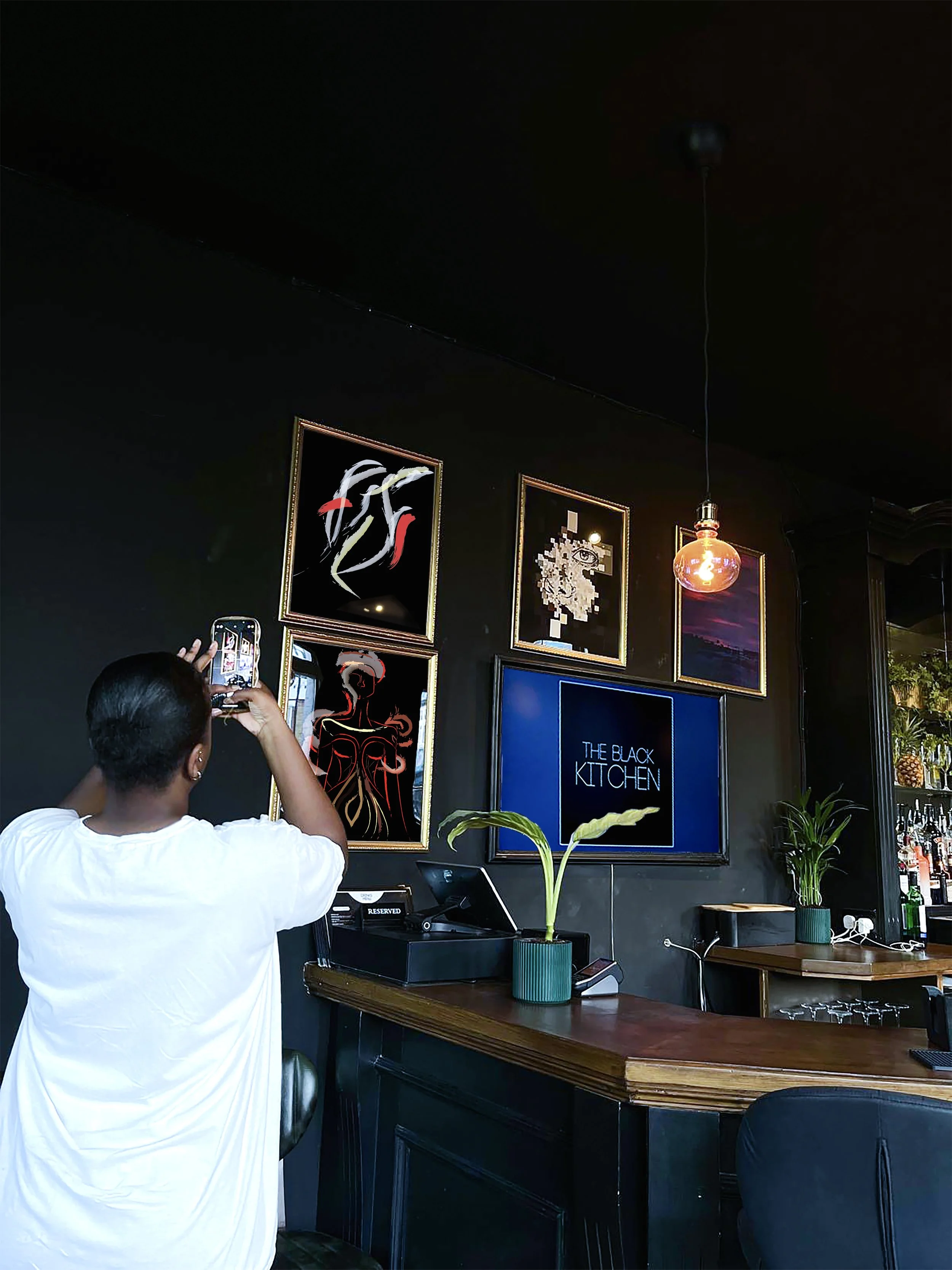 This commission involved adapting selected works from the Strokes series and the FE1 Facial Evolution collection to perfectly fit the custom frame dimensions provided by the restaurant. Each piece was carefully adjusted to preserve the integrity and impact of the original artwork while enhancing the space’s aesthetic. Additionally, the project includes a rotating art program, with new pieces being showcased every quarter, ensuring the restaurant’s interior remains dynamic, engaging, and uniquely reflective of bespoke artistic curation.